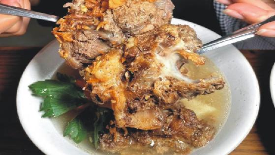 Sop iga dan sop buntut yang disajikan bersama potongan sayuran berupa wortel dan juga kentang. Iga disini empuk dan tidak berbau sama sekali karena dimasak menggunakan tungku selama berjam-jam lho.